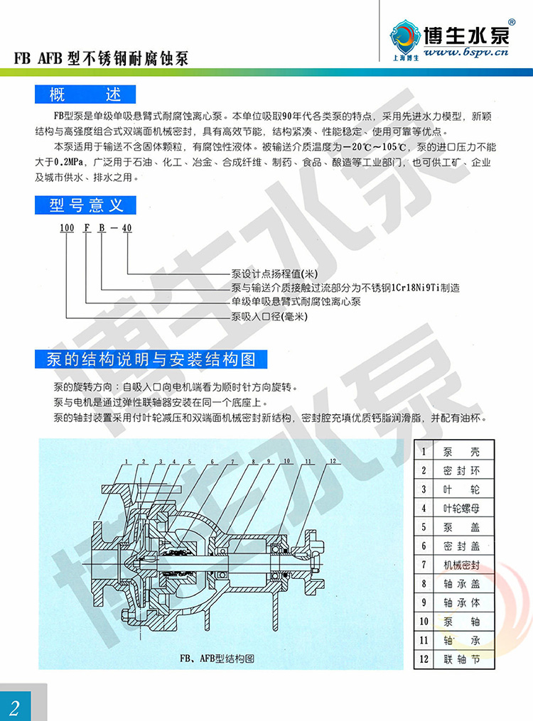 博生牌FB AFB型耐腐蝕泵